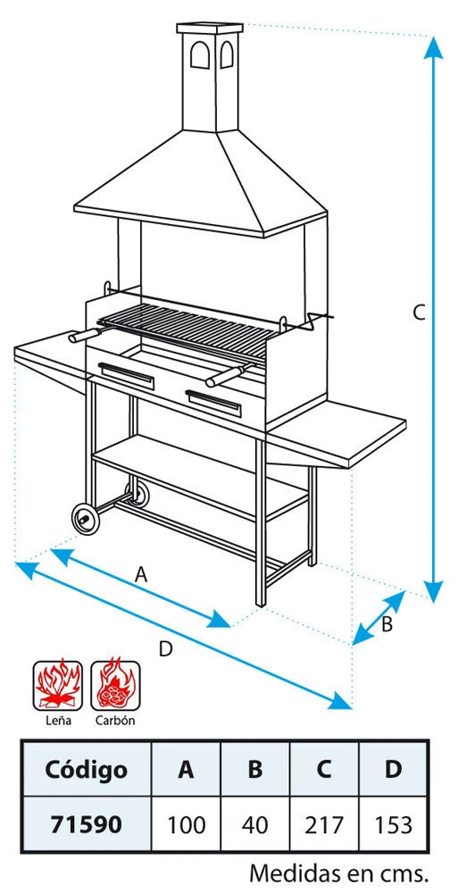 – Combustible recomendado: Leña, Carbón y Briquetas.