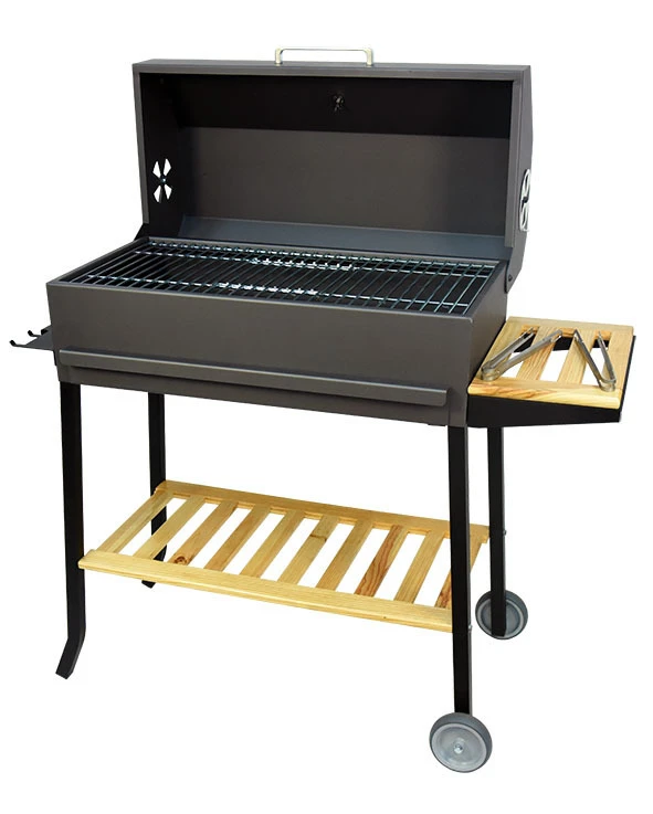 Las barbacoas de Imex El Zorro han sido completamente rediseñadas. Los cambios más relevantes a destacar son: Elegantes ruedas 4×4 para todo tipo de superficie, estante lateral reforzado de madera, tapa función horno con termómetro, cajón recoge cenizas reforzado, parrilla de hierro fundido, cuba fabricada en acero de alta resistencia lo que nos permite poder usar leña sin problema.