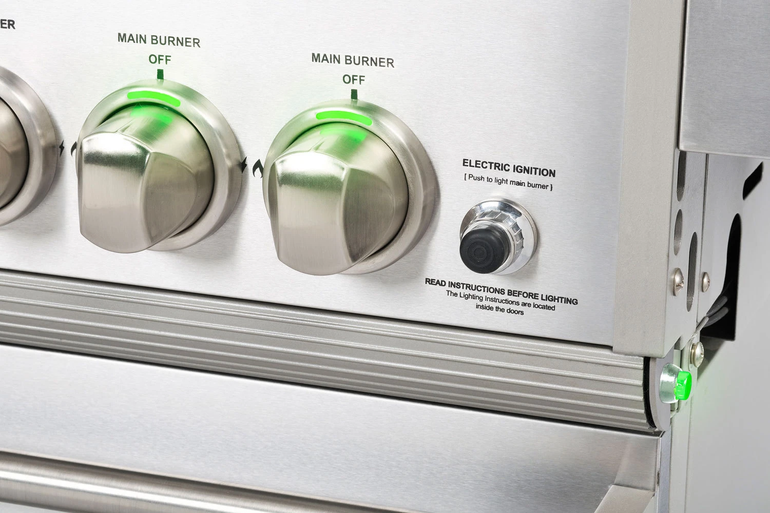 – Incluye prestaciones de líder tales como encendido electrónico, mandos retro iluminados con LED, parrilla de calentamieno superior.