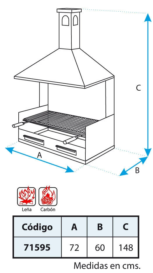– Medida de la parrilla: 68 x 60 cm.