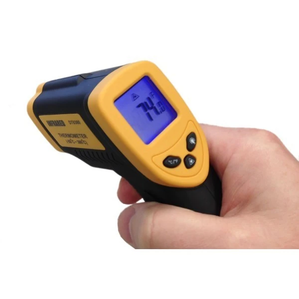 Muy fácil de usar, simplemente apunte, presione el botón y el termómetro le mostrará sobre la pantalla LCD la lectura de la temperatura al instante. Gracias al láser integrado podremos apuntar con precisión el punto exacto a medir.