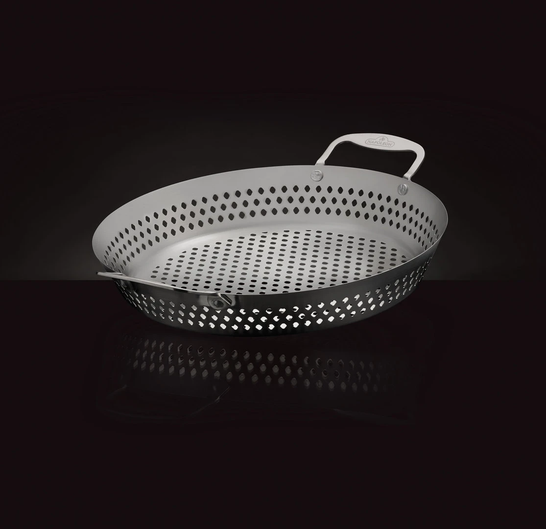 La cesta para verduras Napoleon de Acero Inoxidable es perfecta para asar verduras u otros alimentos pequeños a la barbacoa. El diseño perforado asegura que el calor pueda circular bien y que los alimentos se cocinen uniformemente en la cesta.