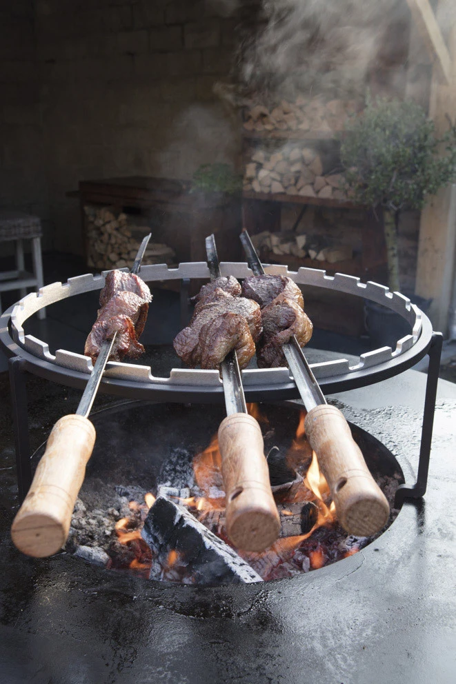 Complementa su Barbacoa de Leña Ofyr con este juego de accesorios para Ofyr 100. El set Premium incluye una Parrilla Redonda 100 cm, un Anillo de Espetos Horizontales 100 cm, Espetos 85 cm y la Tapa Cubre Fuego Negro 100 cm.