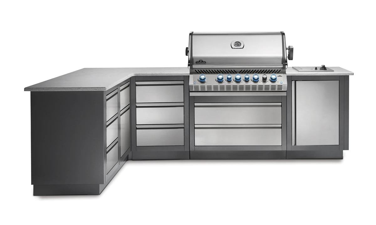 El panel final para el lateral de su isla Oasis de Napoleon termina limpiamente su cocina exterior.