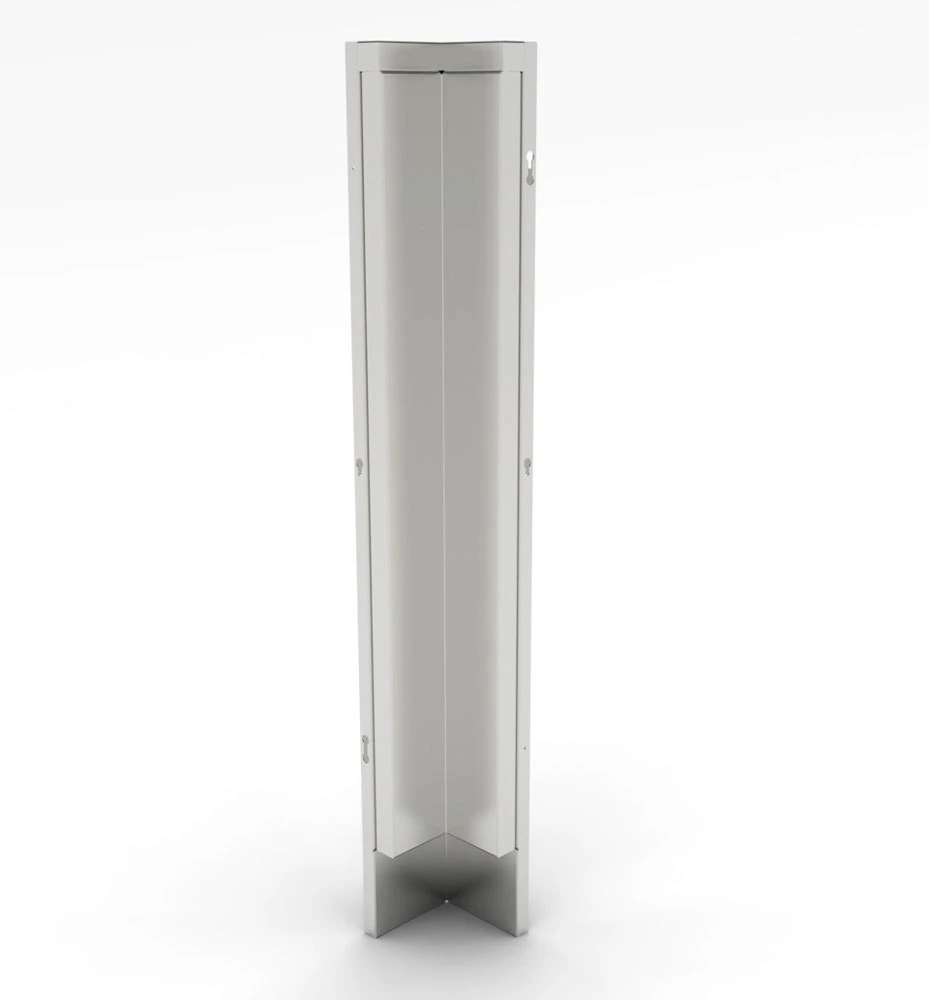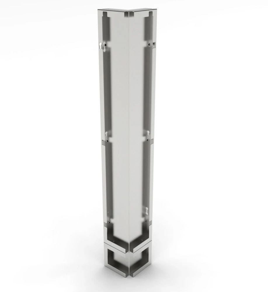 El espaciador para módulos Inox. a 90º está construido enteramente de Acero Inoxidable grado 304 del calibre 16 y 18 y está diseñado para cocinas de exterior con esquinas. El espaciador viene con el rodapiés liso incluído y con el riel para la encimera extraíble. Se fija muy fácilmente entre dos módulos, sin necesidad de herramientas gracias a su sistema Pin-Lock.