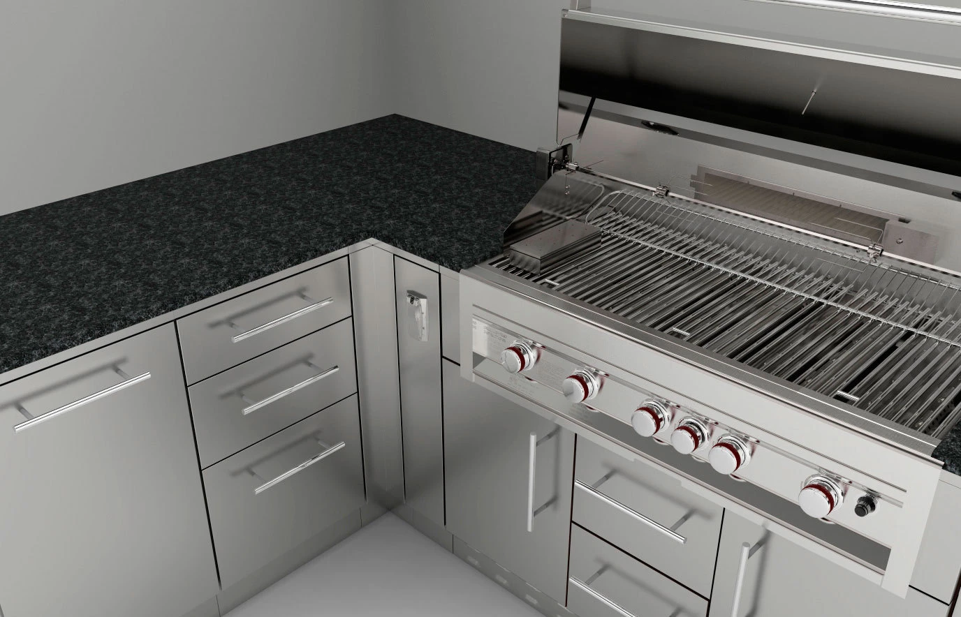 La línea completa de módulos de cocina para exterior de Acero Inoxidable, son totalmente resistentes a cualquier tipo de clima, ya que están fabricados con el mejor Acero Inoxidable profesional de grado 304. Estos módulos son de una calidad extraordinaria y su inversión durara toda la vida. El resultado: una moderna cocina de exterior de Acero Inoxidable brillante.