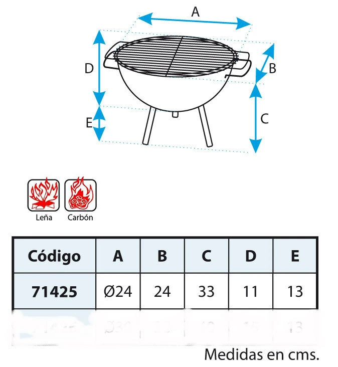 – Superficie de cocción: 24 x 24 cm.