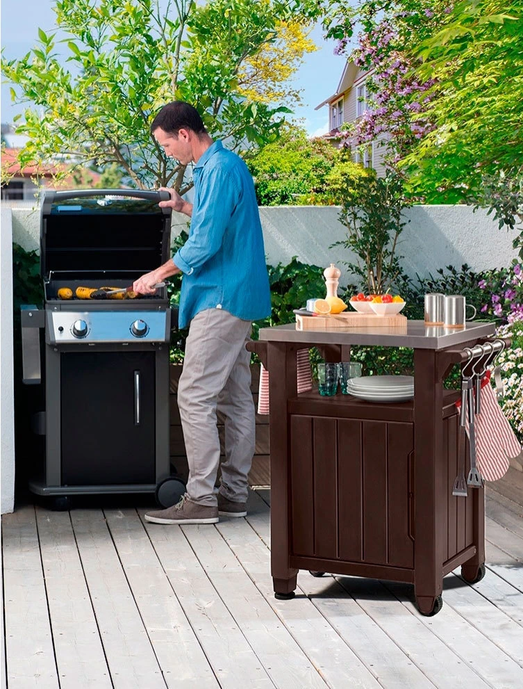 Este mueble de Keter es la solución todo en uno para facilitar el uso de la barbacoa y otras reuniones al aire libre en familia y con amigos. Es de uso múltiple por lo que le dará la solución que necesita y le permite realizar una variedad de funciones desde preparar la comida para la barbacoa, a una mesa de servir o estación de jardinería.
