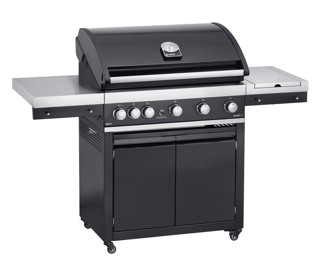 La barbacoa Grandhall Maxim G 5 es perfecta para los amantes de la buena mesa y para los parrilleros más exigentes. Con su excelente construcción, diseño elegante, y buenísima relación calidad/precio, esta barbacoa nos quedara fantástica en cualquier zona de nuestra terraza o jardín. Con un solo toque de un botón, los quemadores se encienden y alcanzarán la temperatura de cocción en cuestión de minutos. Gracias al termómetro que integra en el tapa, usted podrá conseguir las temperaturas perfectas cuando utilice su barbacoa para función de horno para realizar asados, rustideras, pizzas, pescados al horno, etc. También integra un práctico quemador lateral.