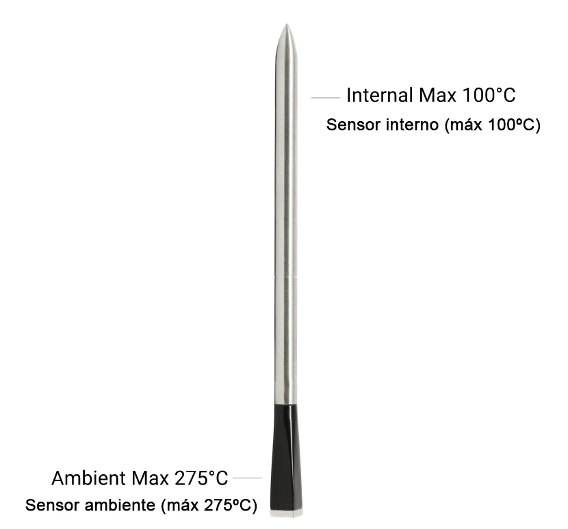 Los termómetros para carne MEATER tienen también un sensor que mide la temperatura de ambiente que te permite saber la temperatura de ambiente que hay cerca del alimento que se está cocinando.