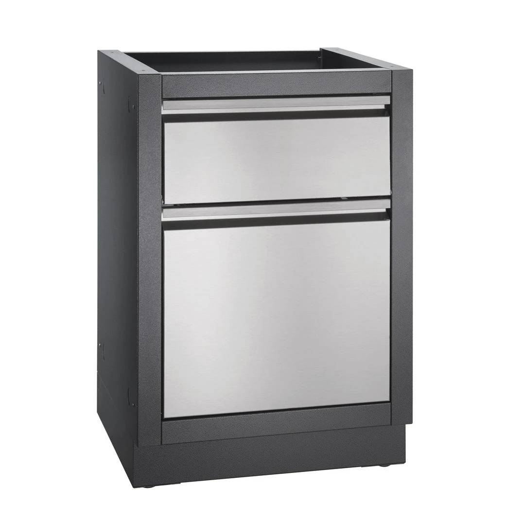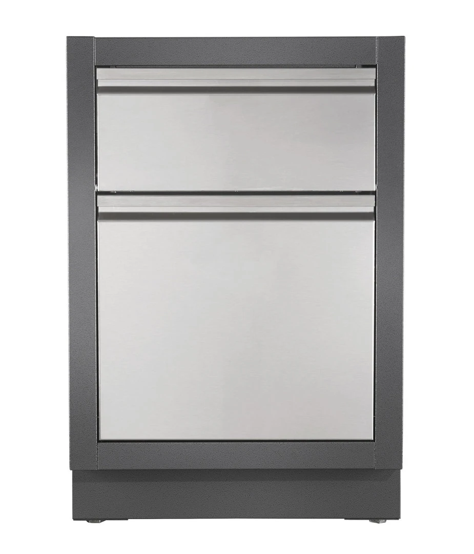 Este módulo está equipado con dos cajones extraíbles, uno de ellos plegable con soporte para colocar el rollo de papel de absorbente. Todo lo necesario para mantener su cocina de exterior serie Oasis impecable.