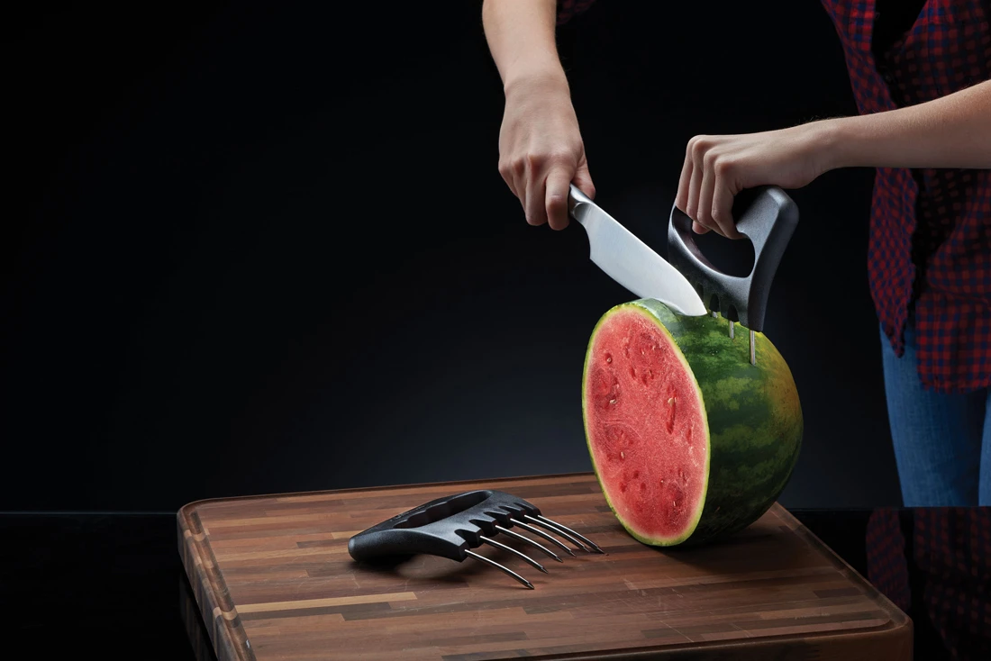Las garras de Acero Inoxidable pueden desmenuzar la carne para hacer deliciosos sándwiches o sostener alimentos grandes para cortarlos.