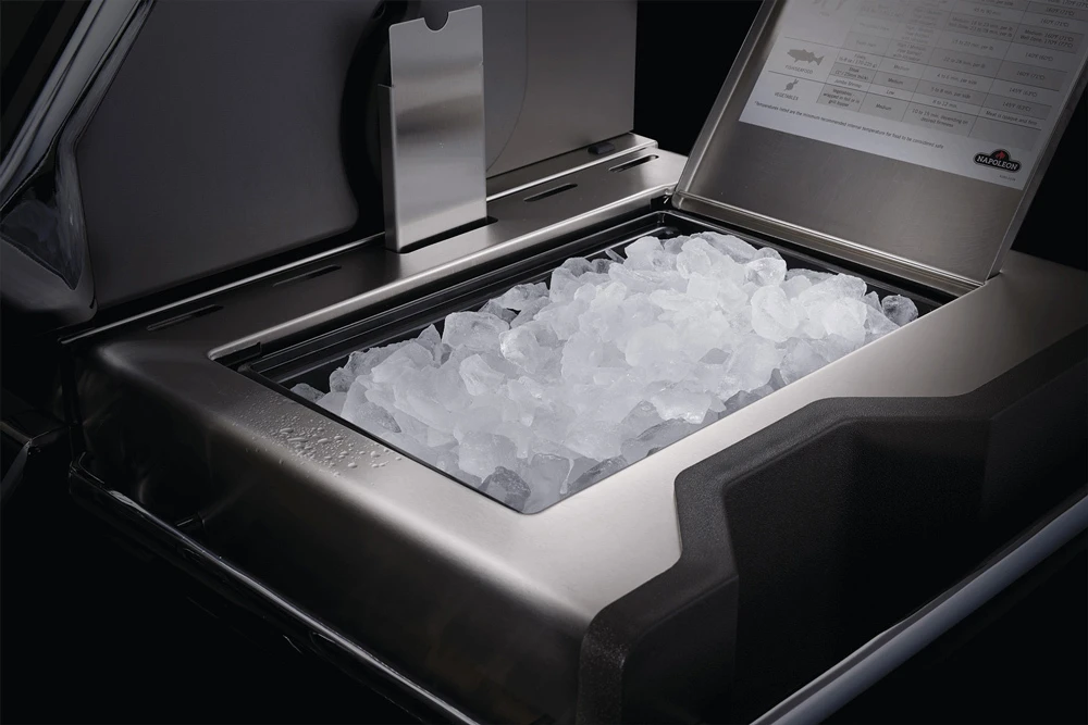 La Napoleon Prestige Pro 500 también cuenta con el logotipo de Napoleon proyectado en el suelo, que le invita a usar a la barbacoa. No vuelva a dejarse la barbacoa encendida, ya que todas las barbacoas de la serie Prestige vienen con la función SafetyGlow, en la que los mandos de control se iluminan en rojo cuando el quemador está encendido. Por supuesto, con el exterior de Acero Inoxidable 304 de esta barbacoa y los bordes pulidos de cromo, quedará muy bien a cualquier hora del día en su espacio exterior.