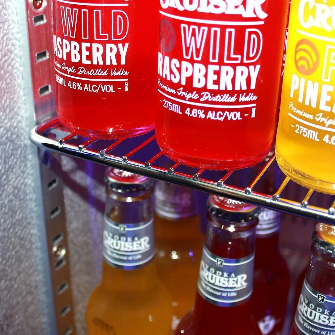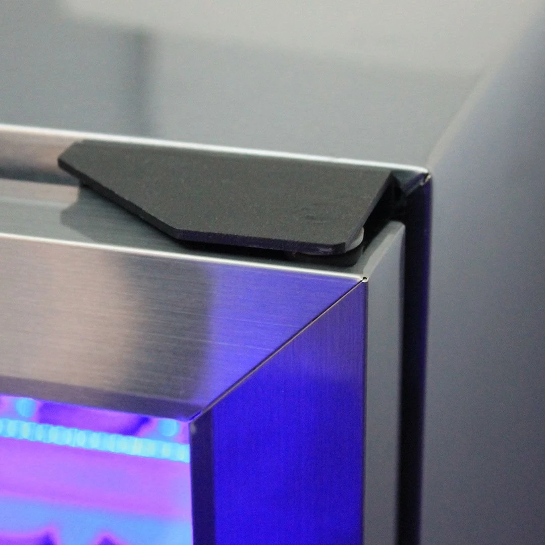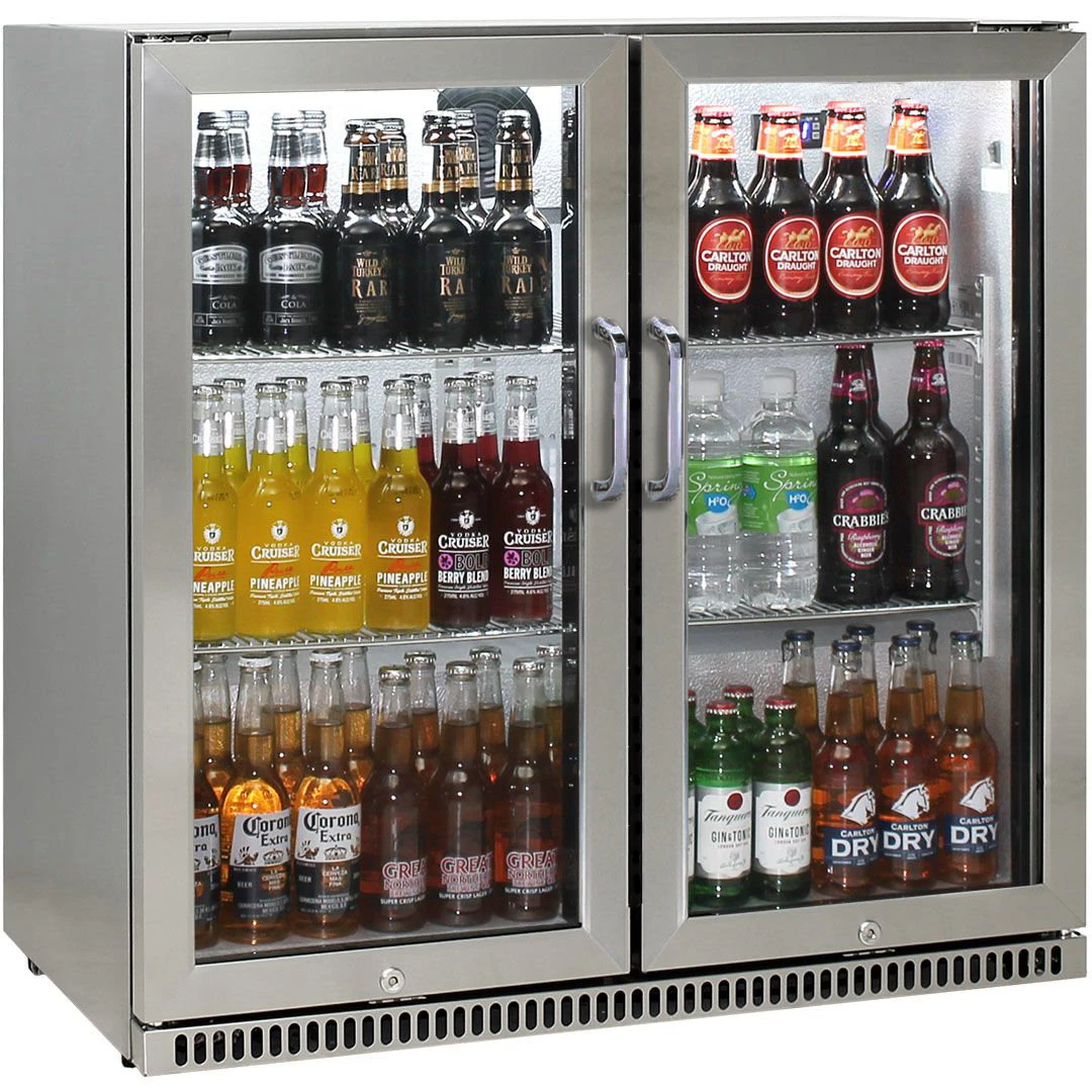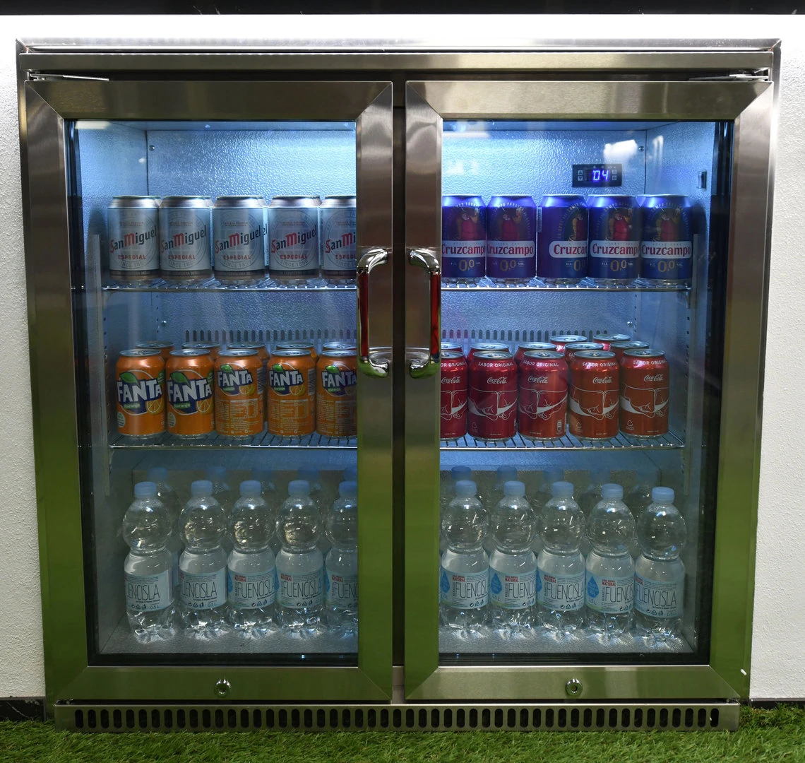 Tiene dos puertas de cristal que son bloqueables con llave e incorpora auto-cierr. Es muy fácil de configurar gracias a su panel de control táctil electrónico, incluye iluminación LED interna que se puede controlar con solo presionar un botón, ideal para usarlo en fiestas nocturnas.