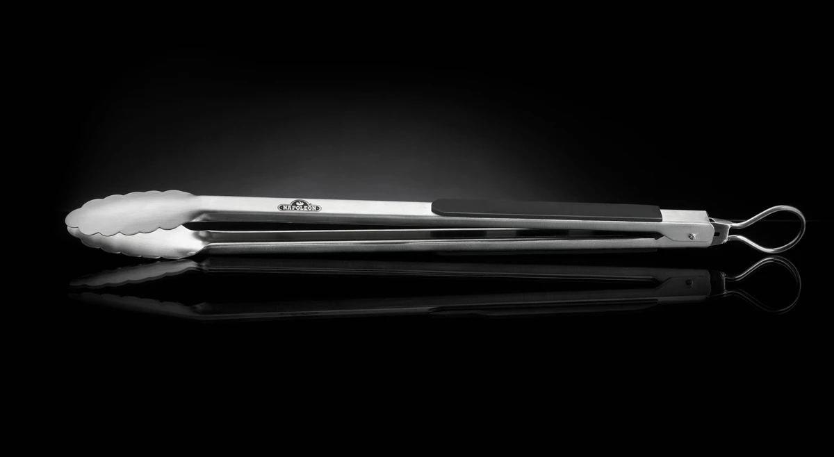 Las pinzas de Acero Inoxidable Napoleon son las mejores para el trabajo. Empezando por la perfecta longitud, estas pinzas no son ni demasiado cortas ni demasiado largas. Los agarres de goma mantienen las pinzas frías al tacto y dan un poder de agarre extra cuando se usan. Los 41 cm de Acero Inoxidable se sienten equilibrados y son fáciles de usar en manos pequeñas o grandes y fuertes.
