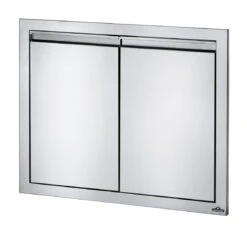 La puerta doble con cajones y plataforma está fabricada con el mismo acabado que las barbacoas Sunstone y con el tirador de acero pulido. Las puertas una vez instaldas quedan completamente a ras, así que es perfecta para diferentes tipos de superfices como piedra, cemento, etc.