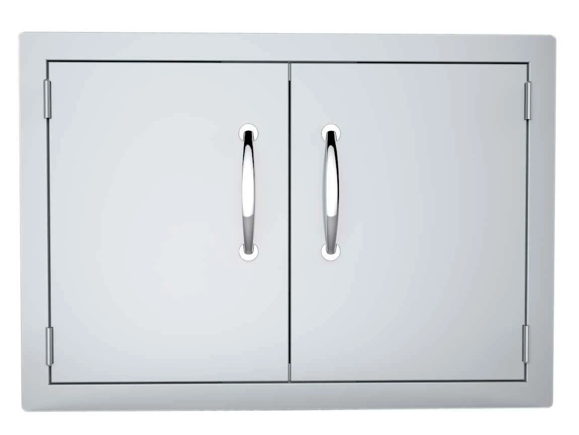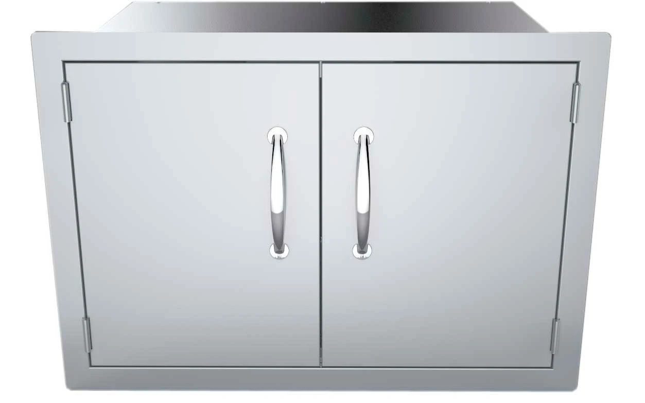 Las puertas dobles con modulo cerrado están fabricadas con el mismo acabado que las barbacoas Sunstone y con el tirador de acero pulido. Las puertas una vez instaladas quedan completamente a ras, así que es perfecta para diferentes tipos de superficies como piedra, cemento, etc.