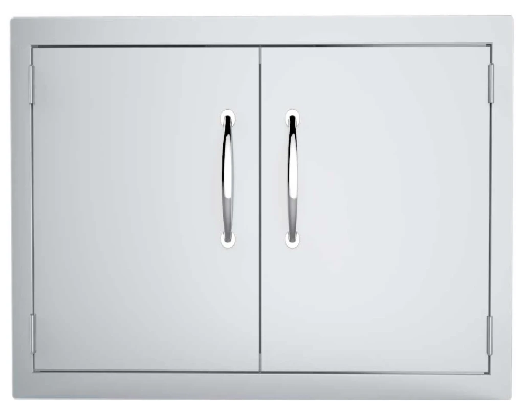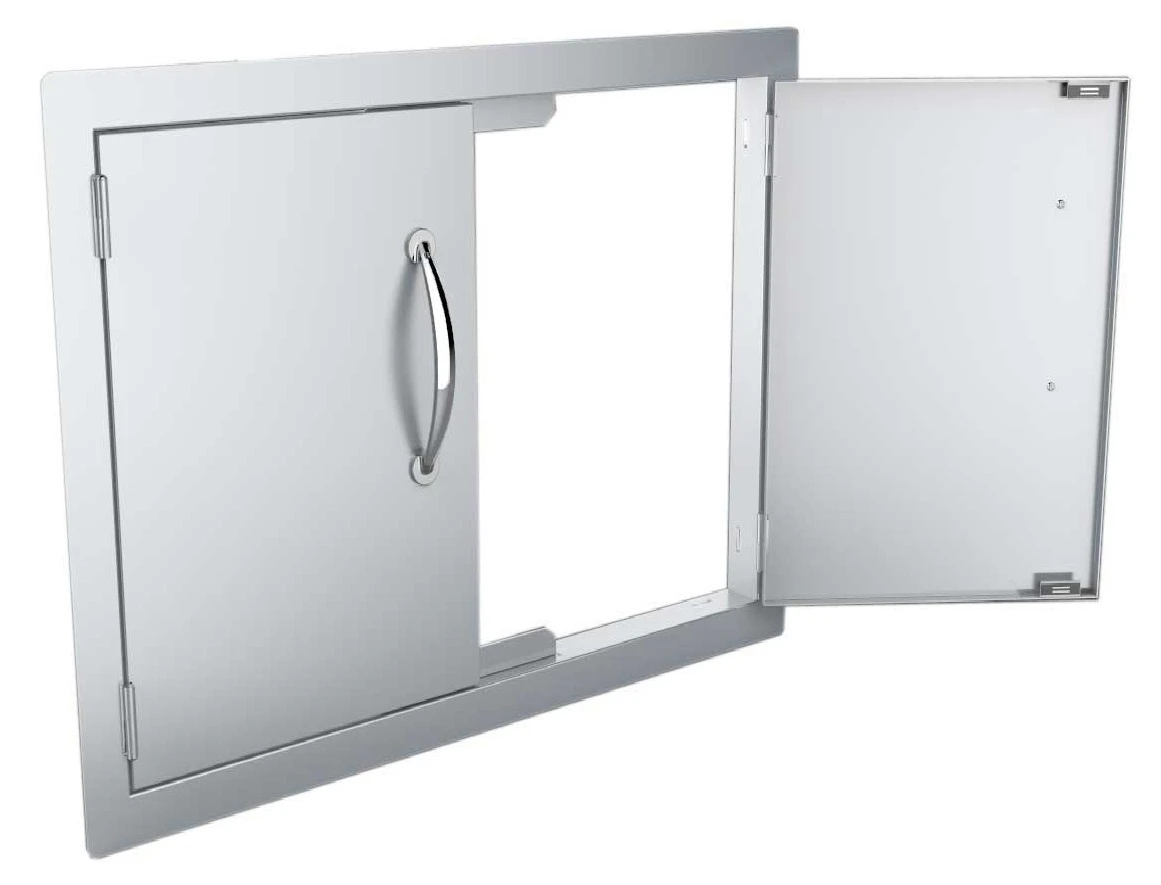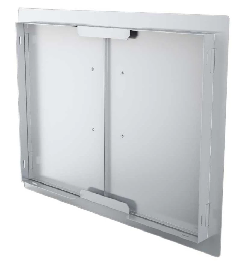 Las puertas grandes dobles están fabricadas con el mismo acabado que las barbacoas Sunstone y con el tirador de acero pulido. Las puertas una vez instaladas quedan completamente a ras, así que es perfecta para diferentes tipos de superfices como piedra, cemento, etc. Además el marco de la puerta viene pretaladrado para una fácil instalación.