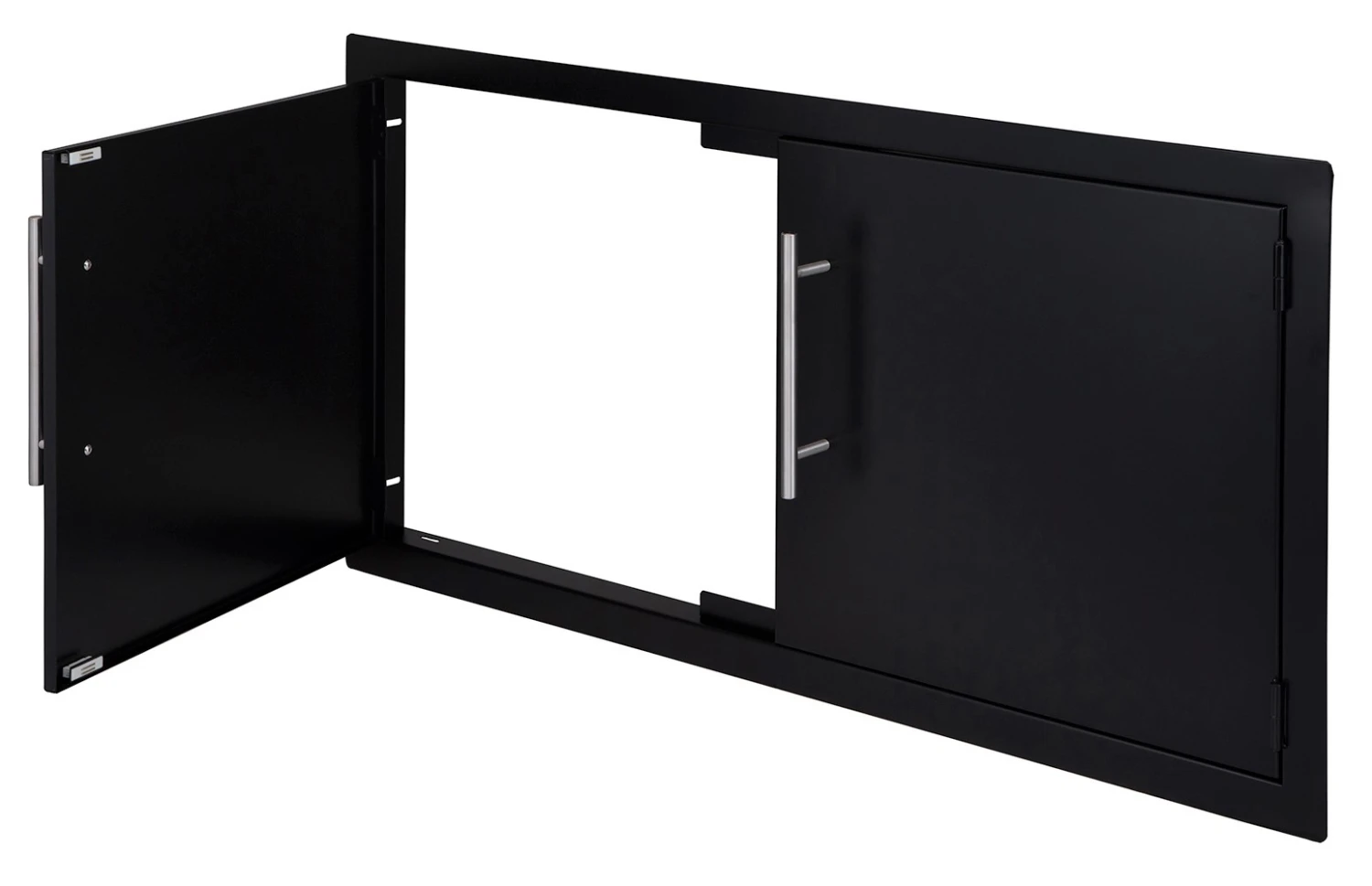 Las puertas dobles están fabricadas en Acero Inoxidable esmaltado en negro y con los tiradores de acero pulido. Las puertas una vez instaldas quedan completamente a ras, así que es perfecta para diferentes tipos de superfices como piedra, cemento, etc. Además el marco de la puerta viene pretaladrado para una fácil instalación.
