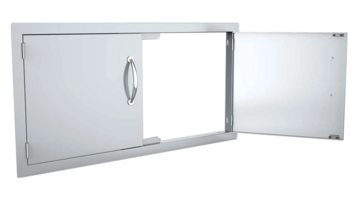 Las puertas dobles están fabricadas con el mismo acabado que las barbacoas Sunstone y con el tirador de acero pulido. Las puertas una vez instaldas quedan completamente a ras, así que es perfecta para diferentes tipos de superfices como piedra, cemento, etc. Además el marco de la puerta viene pretaladrado para una fácil instalación.