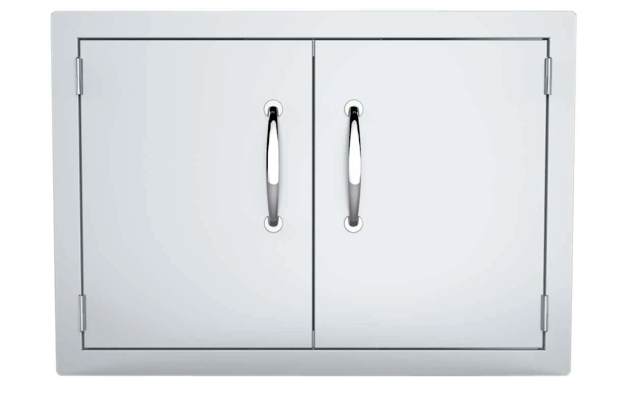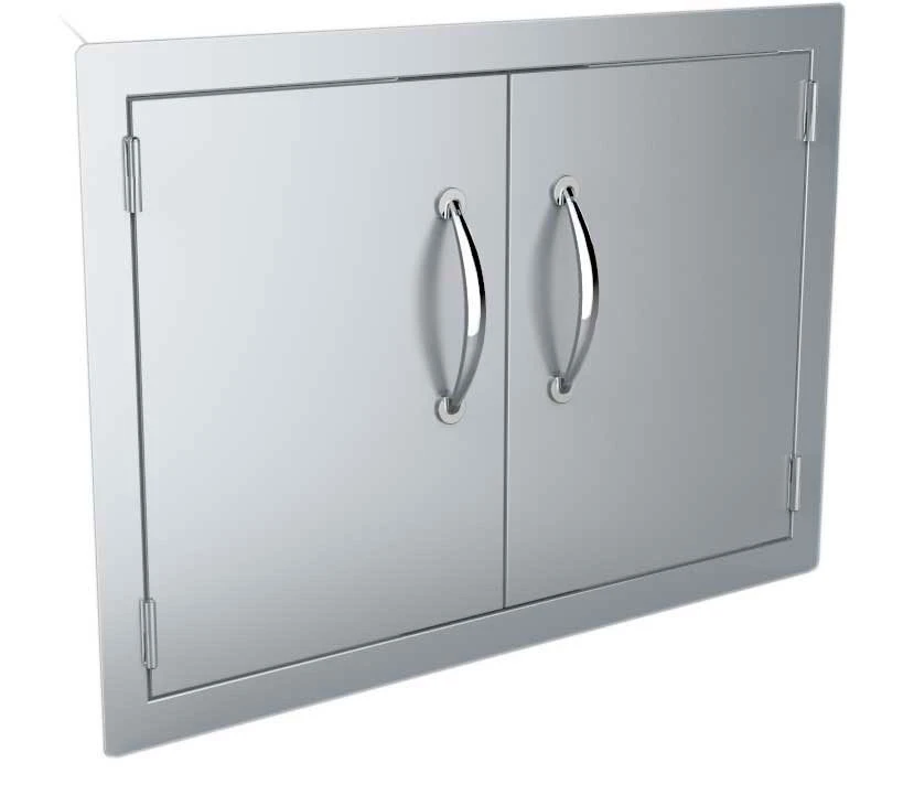 Las puertas dobles están fabricadas con el mismo acabado que las barbacoas Sunstone y con el tirador de acero pulido. Las puertas una vez instaldas quedan completamente a ras, así que es perfecta para diferentes tipos de superfices como piedra, cemento, etc. Además el marco de la puerta viene pretaladrado para una fácil instalación.