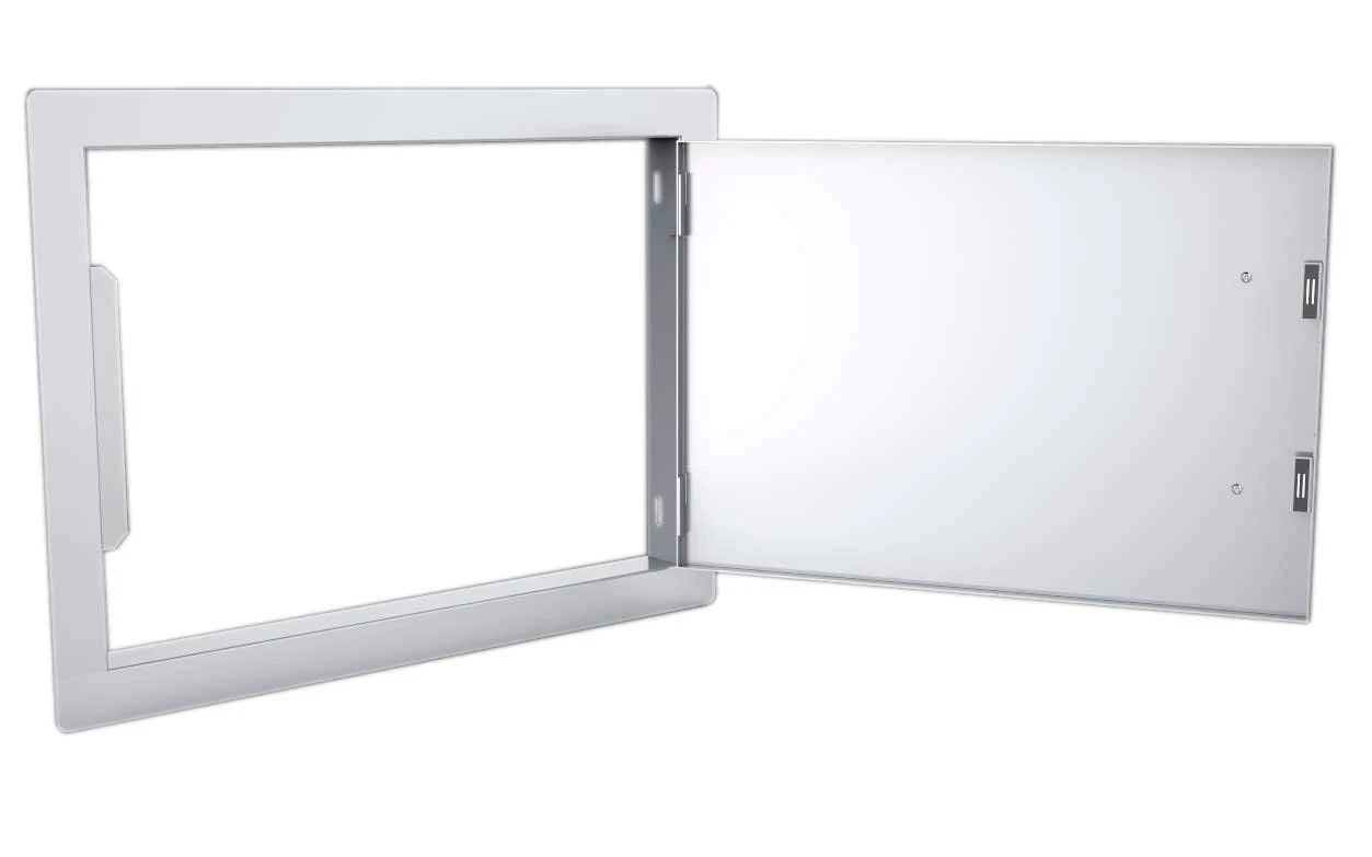 Las puertas horizontales están fabricadas con el mismo acabado que las barbacoas Sunstone y con el tirador de acero pulido. Las puertas una vez instaldas quedan completamente a ras, así que es perfecta para diferentes tipos de superfices como piedra, cemento, etc. Además el marco de la puerta viene pretaladrado para una fácil instalación.