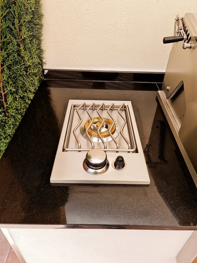 El quemador de gas simple para encastrar es perfecto para cocinar con nuestras ollas y sartenes en nuestra cocina de exterior.