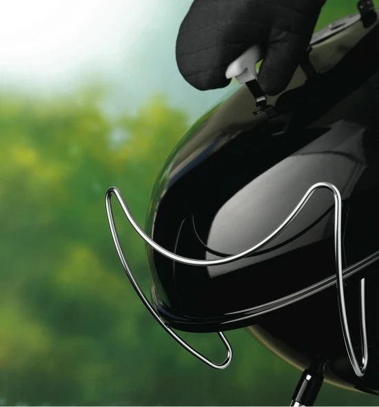 El soporte para tapa de Barbacoas de carbón Weber también sirve como escudo para el viento.