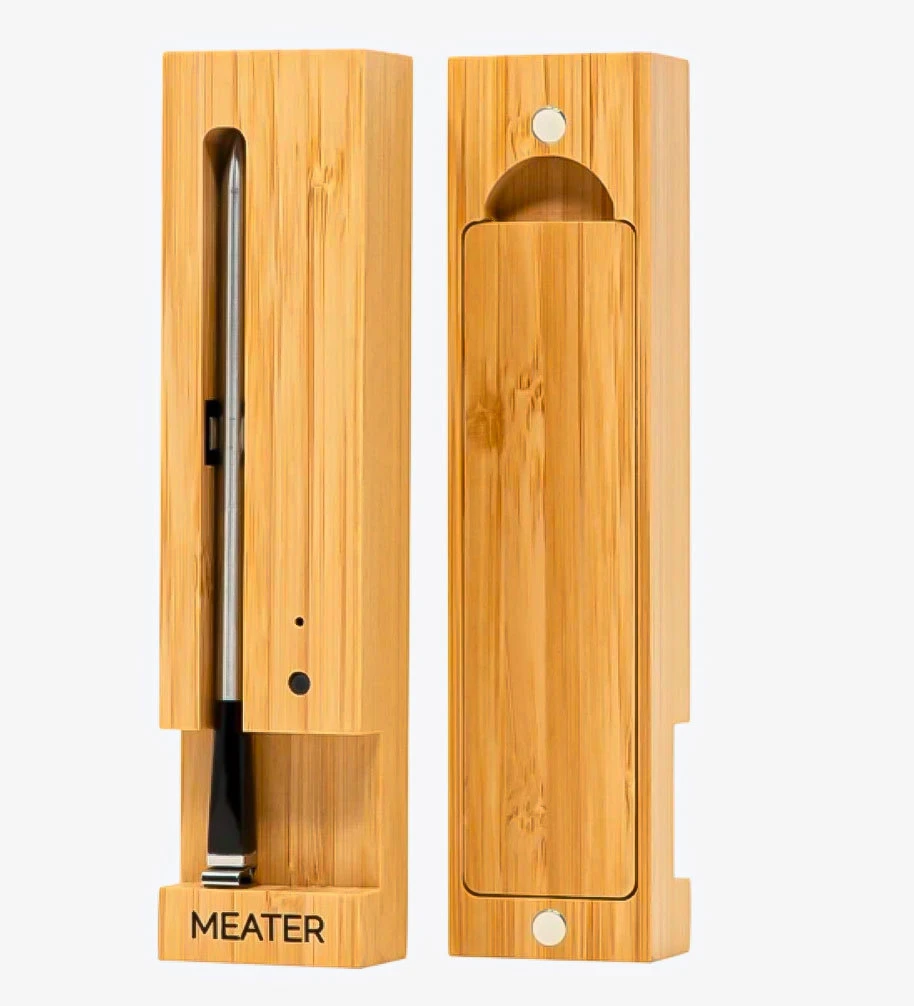 – MEATER Link: puedes extender el alcance de tu termómetro MEATER sobre el alcance de la señal WiFi de tu casa gracias al repetidor de señal que está instalado en el estuche de madera.