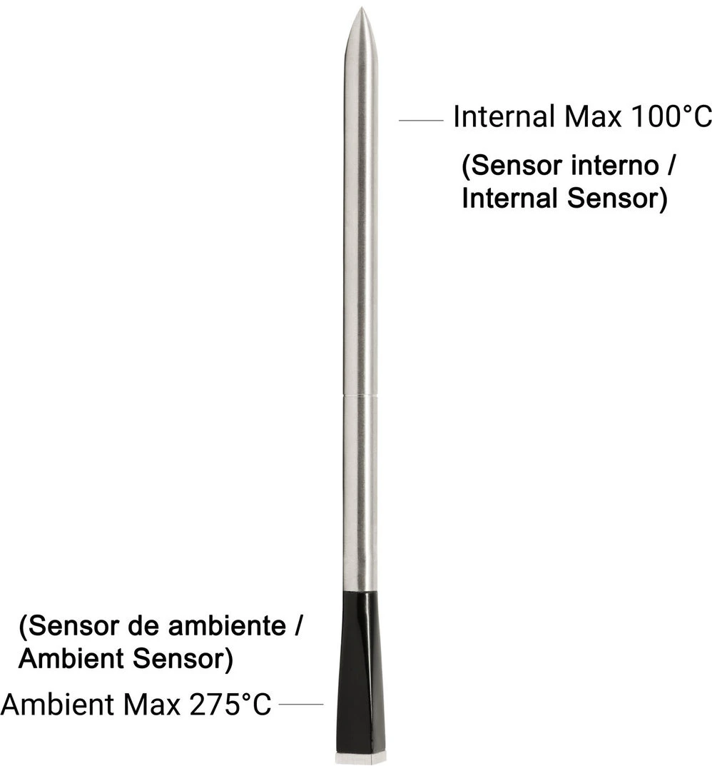 – Rango del sensor de temperatura interna del alimento: 100°C.